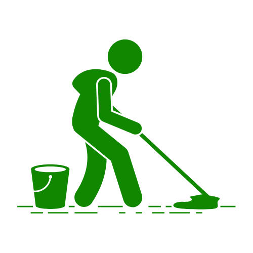 Aspiration et lavage des sols ; nettoyage du bureau, des étagères…